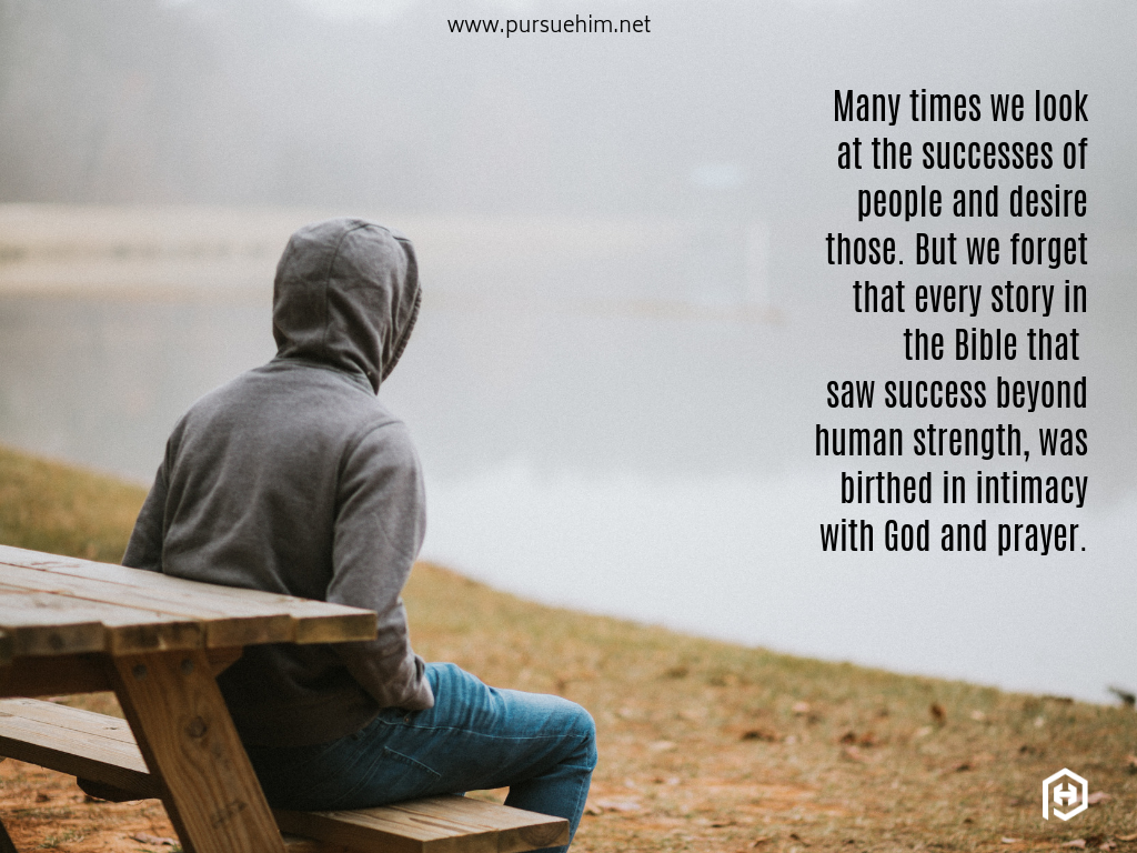 Many times we look at the successes of people and desire those. But we forget that every story in the Bible that saw success beyond human strength, was birthed in intimacy with God. Every supernatural act, every decision made in the open, the very source of unshakable faith, was a overflow of God encounters in the secret place.